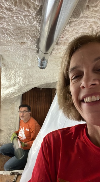 Lastly, in the Fall of 2023, we noticed that our attic was always super hot in the summer and freezing in the winter. We knew this meant that our insulation was poor. So, we completed our efforts to create a tight thermal envelope by adding 6 inches of closed cell foam insulation to our attic. Now the temperature doesn’t vary much, and the temperature of the air coming out of our upstairs vents increased by about 5 degrees. A lot less heat loss from the attic ducts!