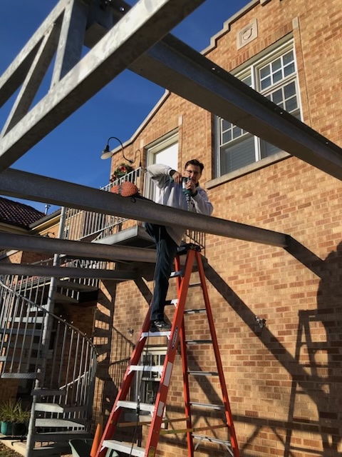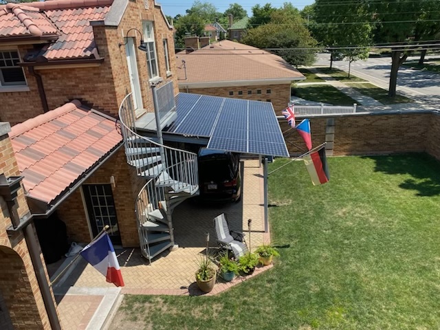 In 2021, our attention shifted to renewable energy and clean transportation. Since we have a clay tile roof that is not conducive to attaching solar panels, we got creative, and designed a carport made with 13 450-watt solar panels (5.85 kW system). We built a steel structure to attach the panels and installed rubber bushings between the panels to make it watertight. And chose “bifacial” panels which can produce up to 10% from stray light reaching the bottom side! The system is producing up to 50% of our electrical needs, depending on the season and weather, etc. The remainder of our grid-supplied electricity comes primarily from nuclear power, which is emissions-free, but has all the pros/cons of nuclear.